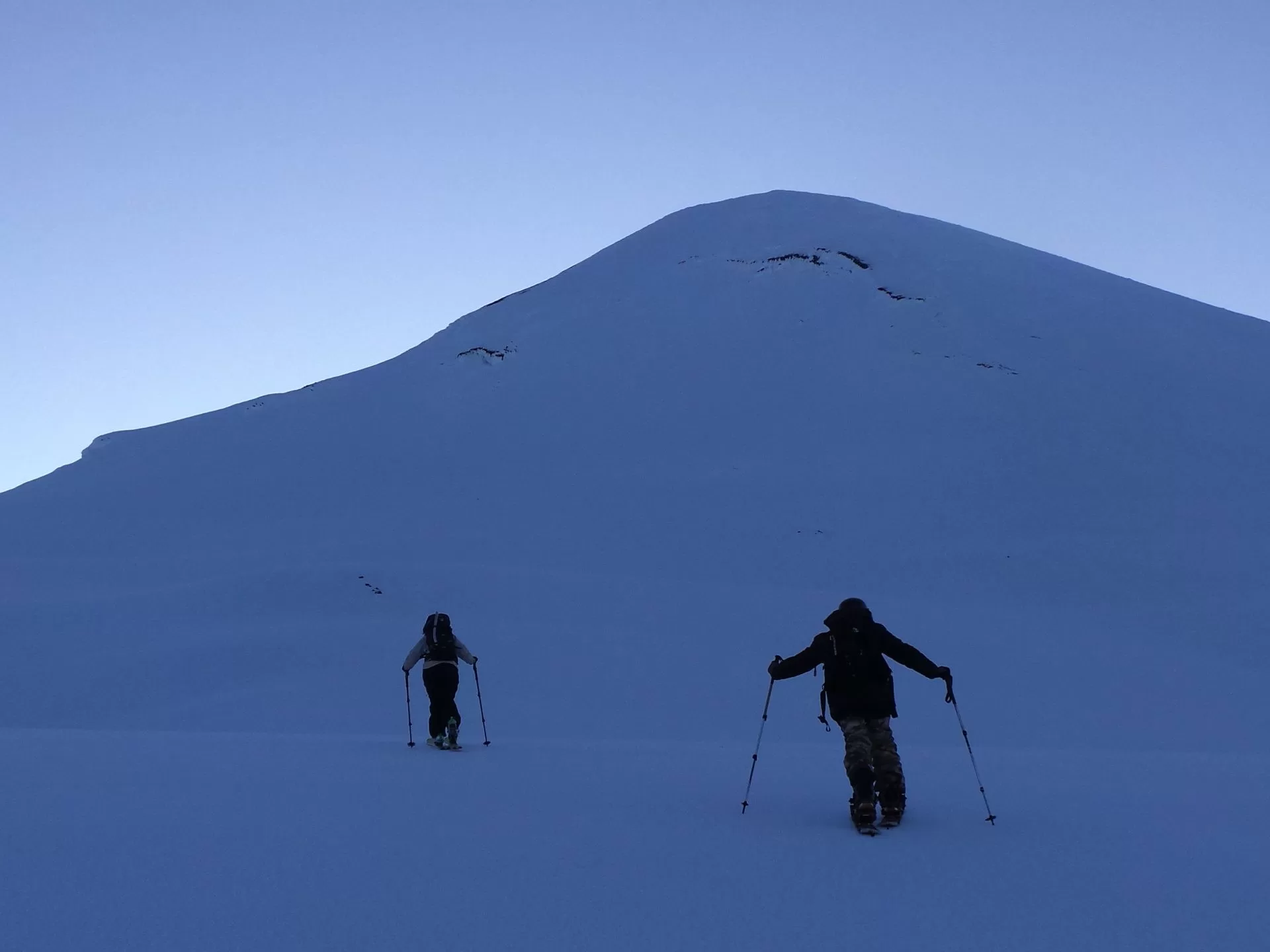 Experiencia de montaña diseñada para 2 días 1 noche enfocada al ski touring, randonnée y la montaña por su puesto. La actividad que se realiza con campamento en este increíble lugar. Las laderas del Volcán Llaíma. por su acceso sur al Centro de ski las araucarias. desde donde comenzaremos nuestra jornada de ski de 2 días.